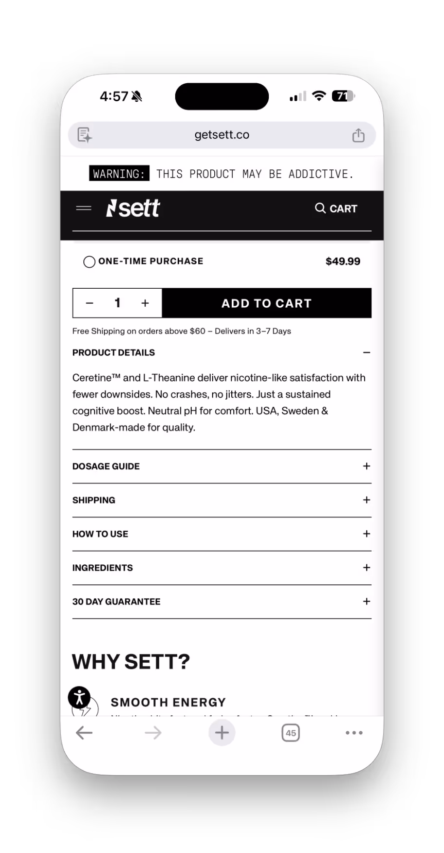 The new Shopify experience launched with immediate impact. Within the first week, conversion rates increased by 22%, supported by improved site speed, clearer user flows, and a stronger brand presence. The final solution provides SETT with a scalable foundation that supports ongoing optimization, new features, and future growth initiatives.